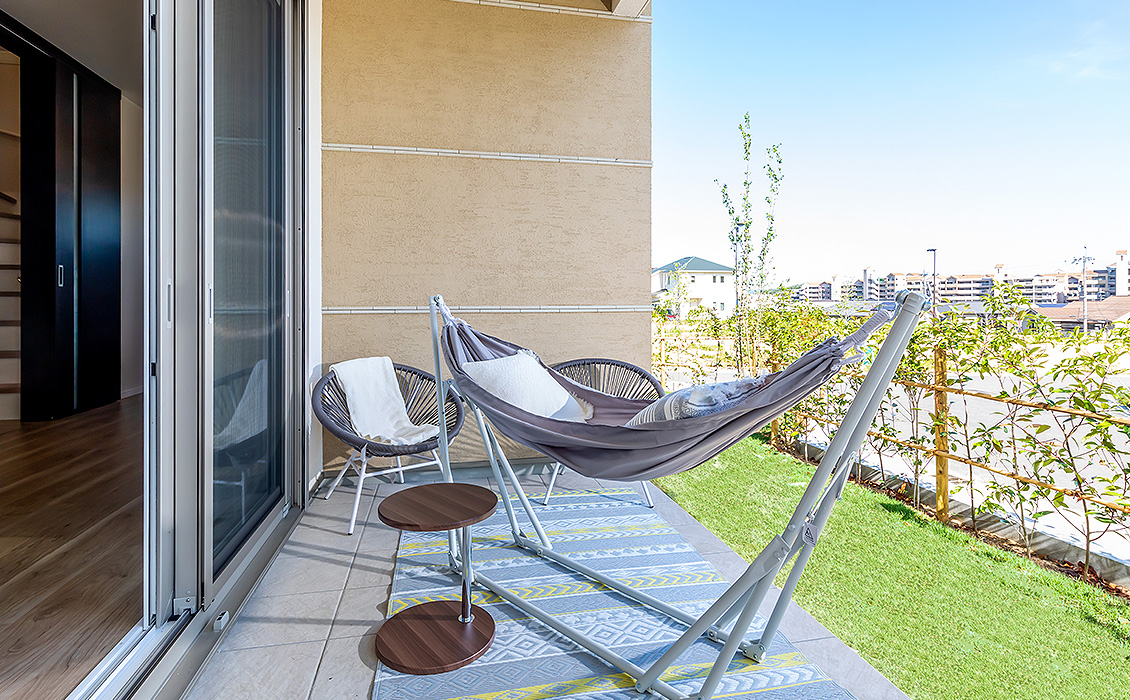 「この街で暮らす前は、終電で乗り過ごすことが結構あったんですが、ここ「学研奈良登美ヶ丘」駅は終点なので乗り過ごす心配がないんです(笑)」と夫。さらに「イオンモールは駅からの帰り道にあるし家まで徒歩9分。街はきれいだし京都の妻の実家も近く、大阪への通勤も便利」とロケーションの良さを称賛。「広い庭があるおかげで友達が遊びに来やすく、子どもはもちろん親同士の交流も盛ん。今は庭を利用してDIYを始めようと思案しています。」と有意義なおうち時間を満喫されています。