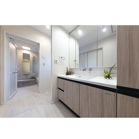 3面鏡付システム洗面化粧台を設置した洗面室