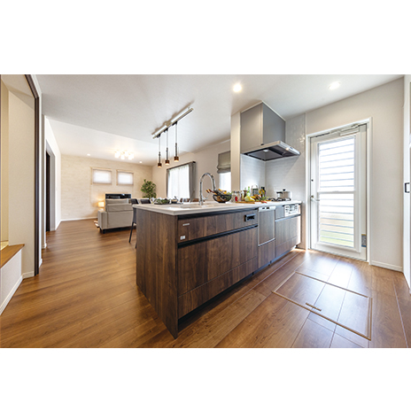 キッチンには保存食品や調味料の収納に役立つ床下収納庫