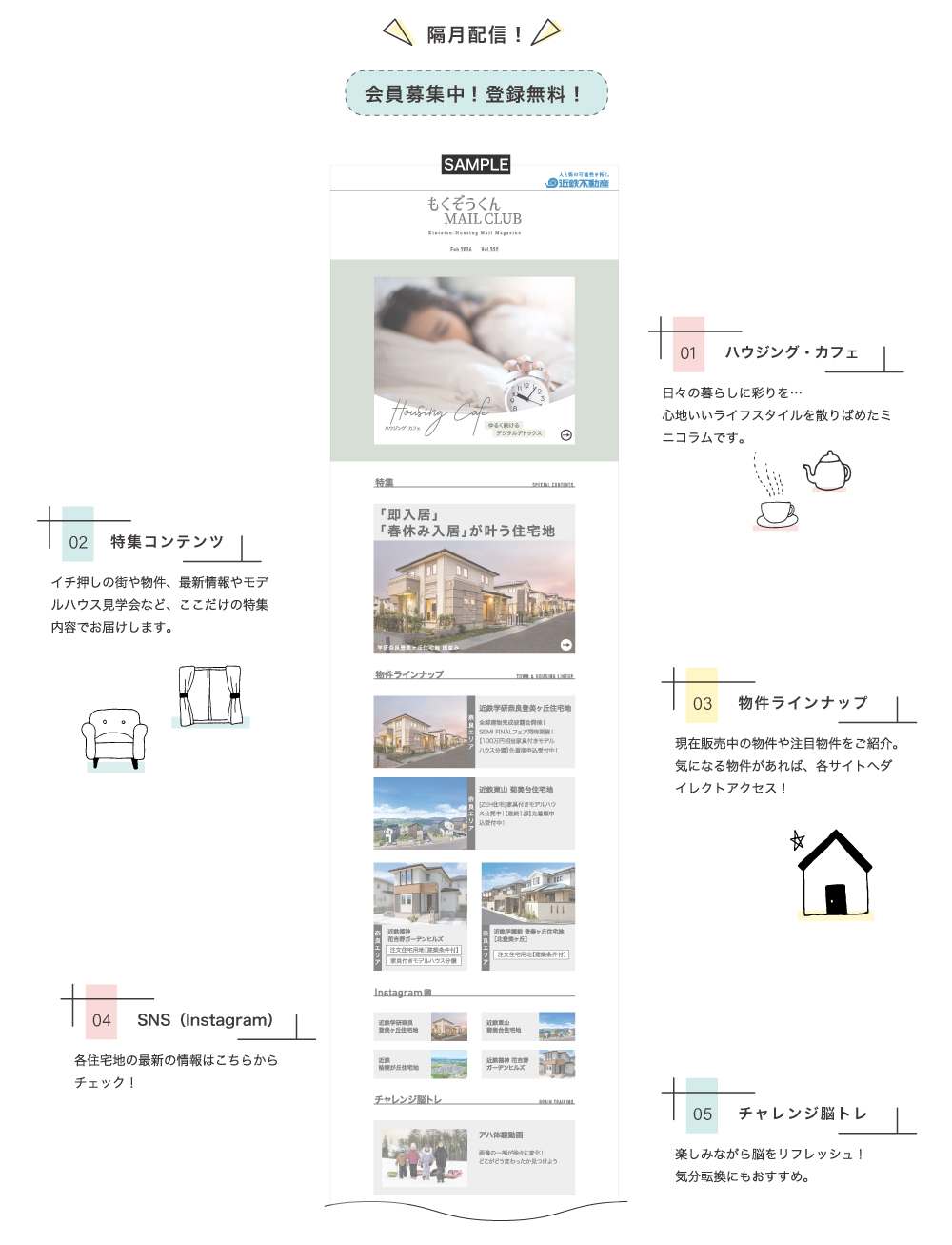 近鉄不動産メールマガジン もくぞうくんメールCLUB 会員募集中! 隔月配信